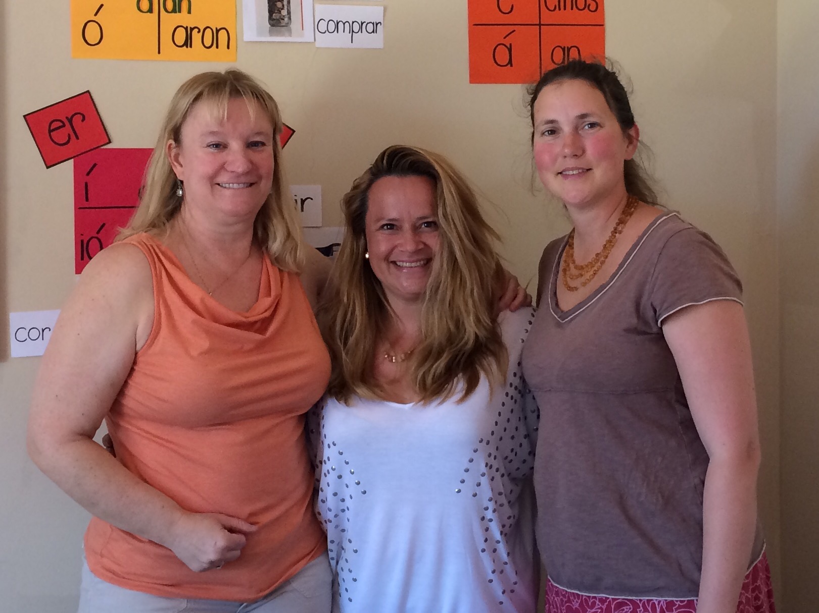 This is my classmate on the left and my teacher in the middle.