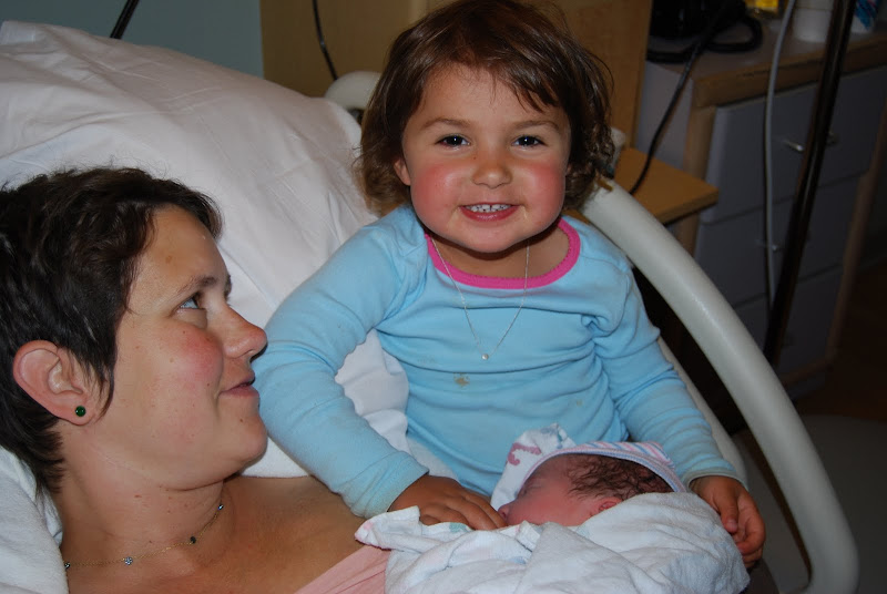 I am proud to report that I caught Helena when she was born. Pretty cool. I think one of the first comments I made once I saw her was: “It looks just like Marion.” I only found out a little later that “it” was a “she.” Once the room settled down after she was born, I realized that Marion’s preschool day was about to be over. We had arranged for our friend, Bonnie, to pick her up, but I realized that I could leave the hospital and bring Marion back to meet her new sister. Given that I had just dropped Marion off before going to the hospital, one friend of ours commented that the birth ended up working out like a dentist’s appointment. Anyway, Marion has been so excited about the baby, I wanted to bring her in to join us as soon as possible. When I picked Marion up, she was unbelievably excited. The picture I posted the other day didn’t even do her excitement justice. Here are a few more that express her attitude a little more.