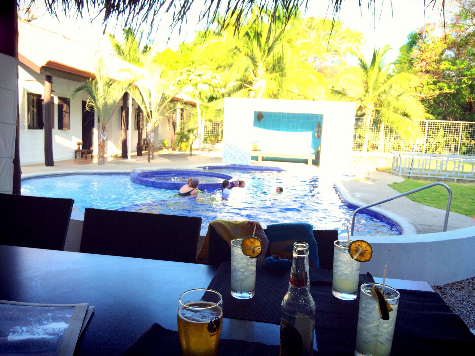 As soon as we unloaded our luggage we went in search of food and drinks. Lucky for us, just a few blocks away from our home is a restaurant with a private pool and lemonade.  Ahhhh…. Paradise.