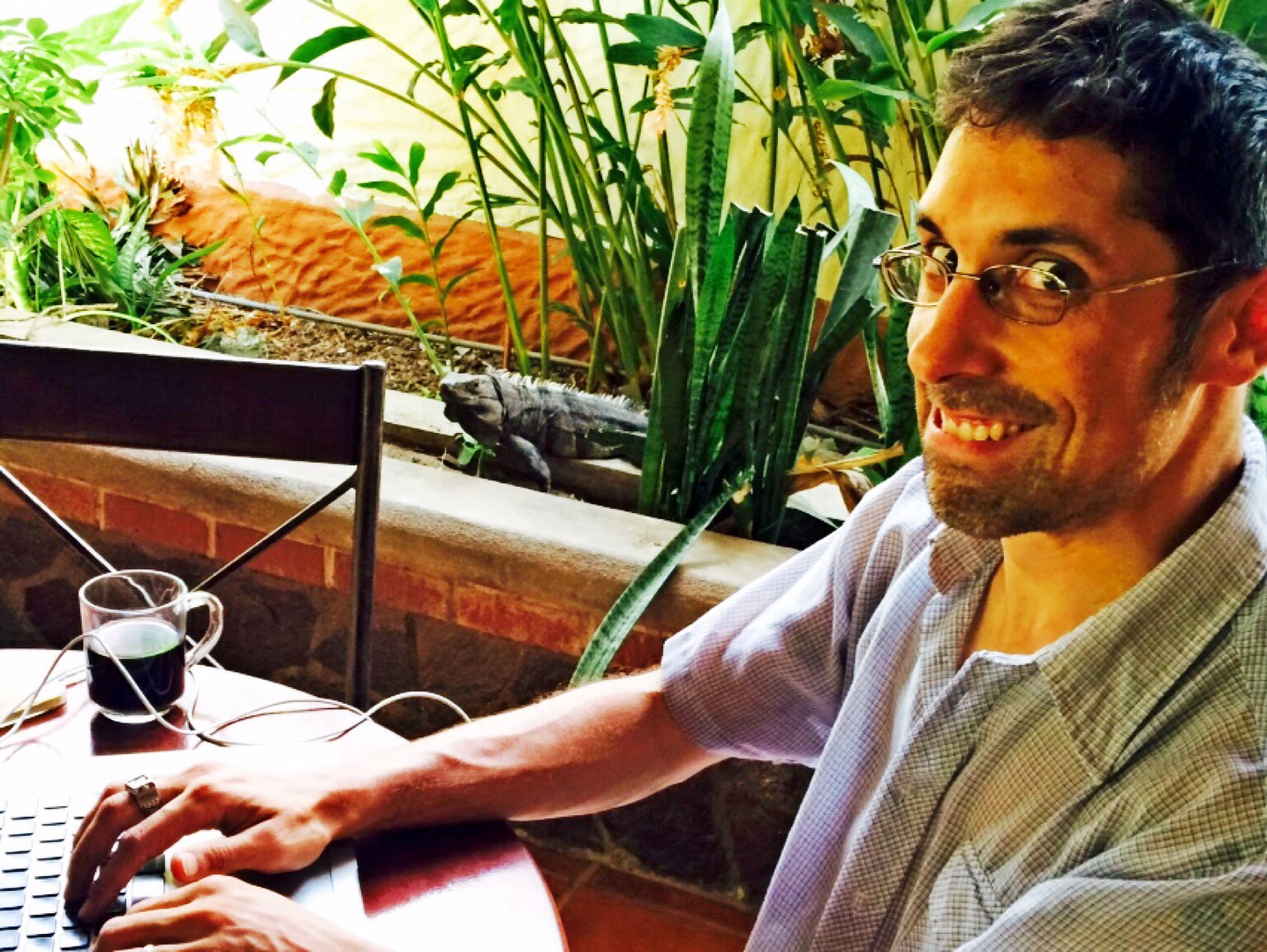 there are iguanas everywhere here. Little ones and big ones. This one sitting with Jesse is, no joke, the size of a very large house cat.