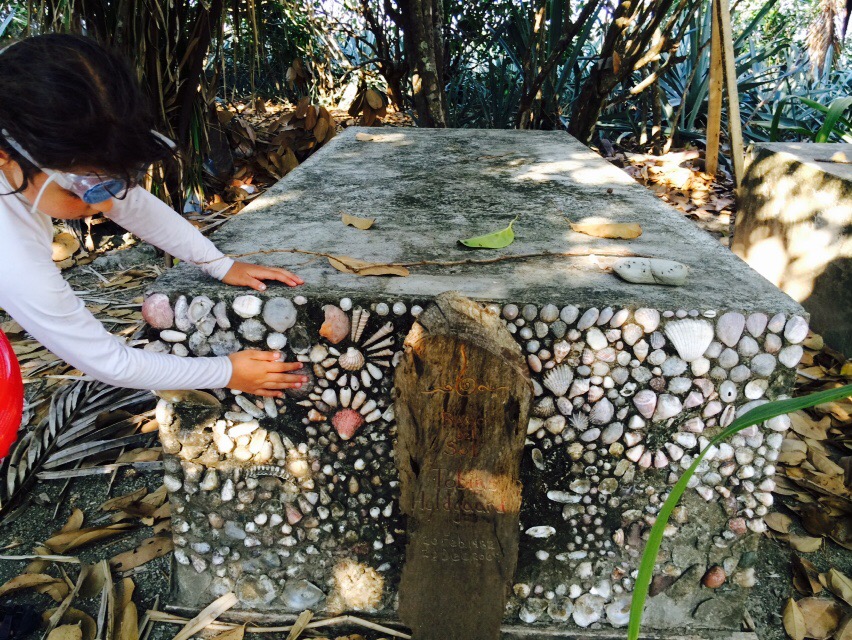 today we hiked out to an island that has a land bridge at low tide. We saw lots of birds and even some fish when we snorkled of the shores of the island cemetery.