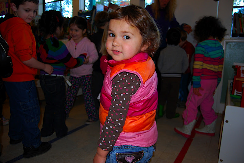 Marion has just begun her first few steps through her journey of structured education. She is now a proud student at the Peter Pan Co-Operative Parent Nursery School. She attends almost 4 days a week from 9am – 12:30. As you can see from these pictures she is quite the BIG GIRL – as she likes to remind us.