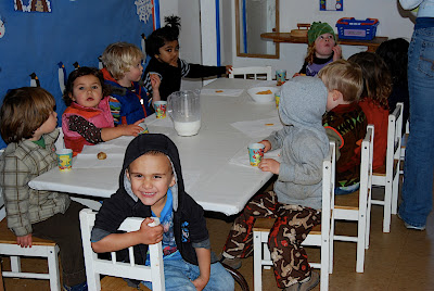 Here she is standing on the Red Line because she is in the Music Room which really means the 2.5 – 3 year old room. She is waiting to be released to play outside.