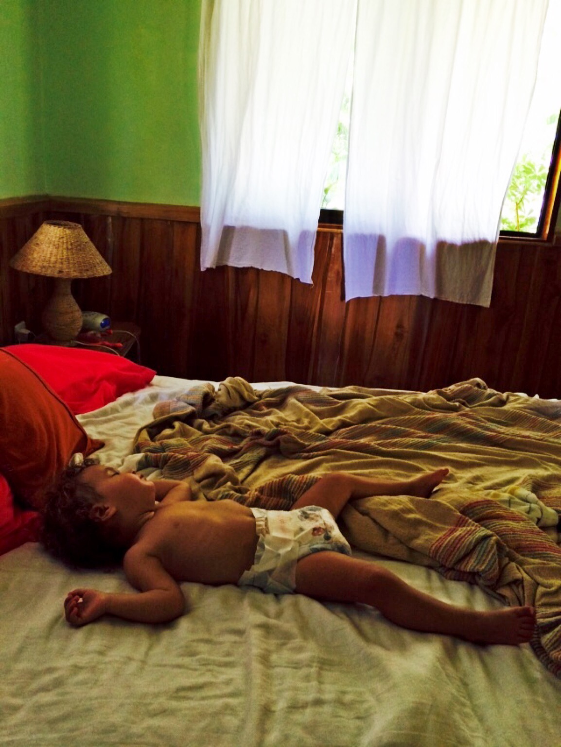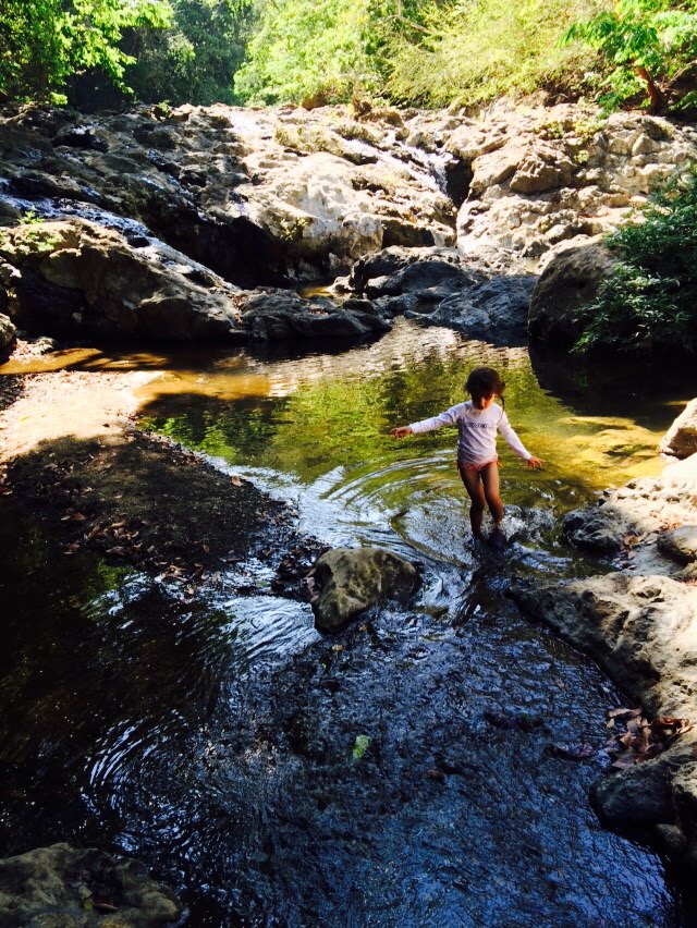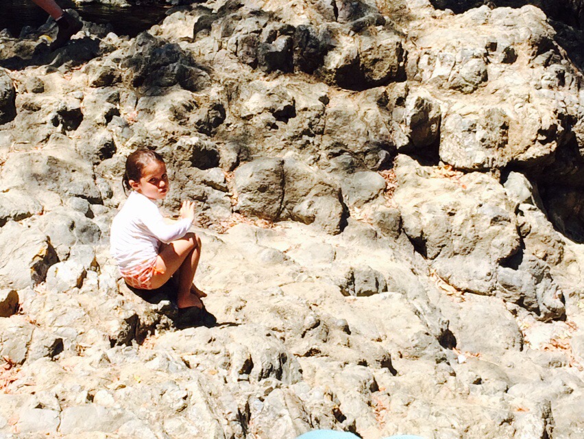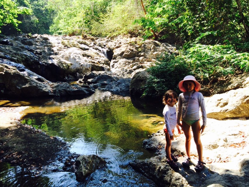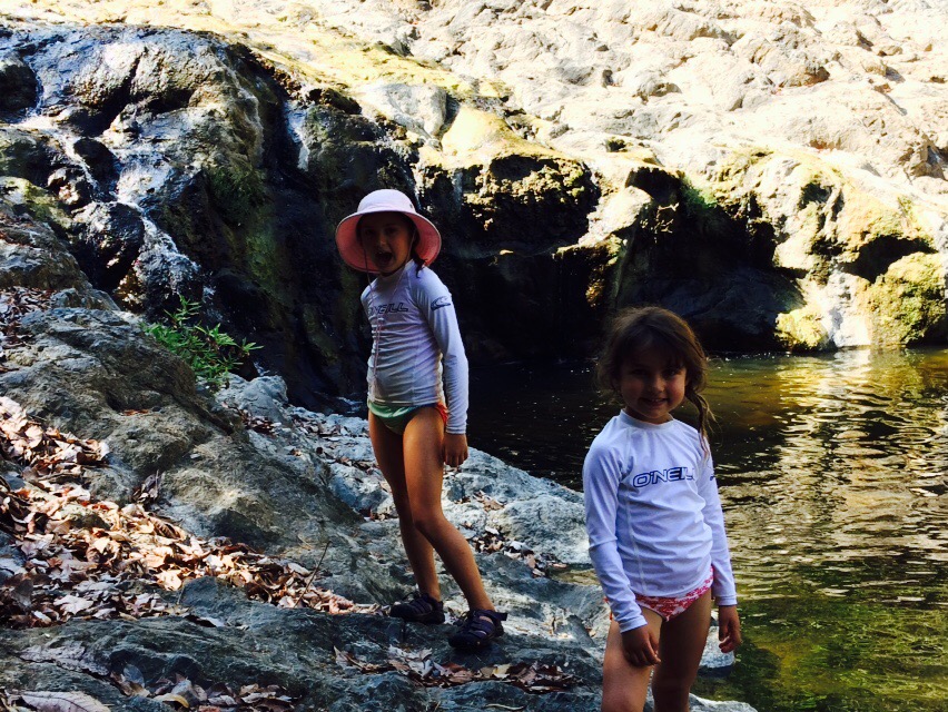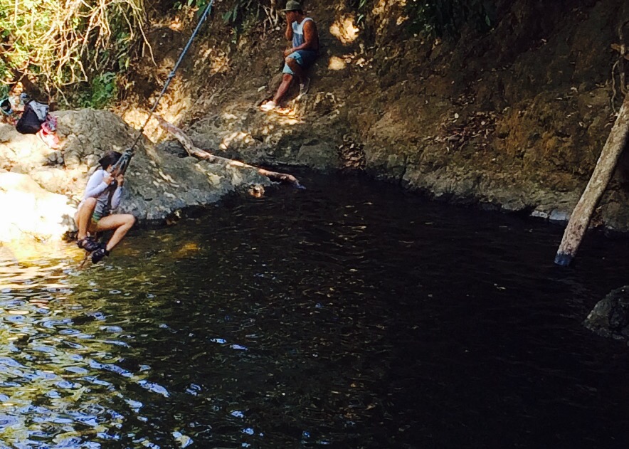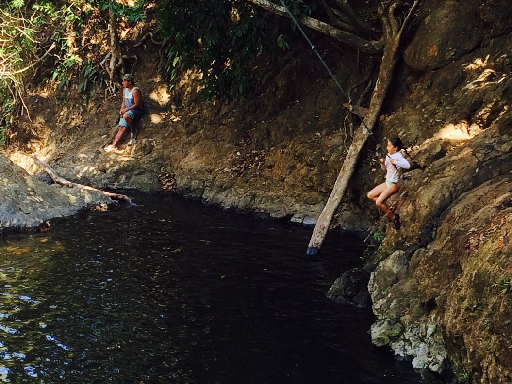 Behind our cabin is the Montazuma River. Marion, Helena, and I (Jackie) hiked for an hour down to the waterfall where the girls played on the rope swing with a dozen young Italian men who kept telling me how impressed they were with the girls. They jumped from the lower waterfall (15 feet) -10 Italians applauding with each jump- and we watched the teenagers jump the second waterfall (60 feet!)