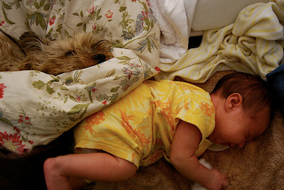I had to make a note of this, more for myself than for all of the grandparents who visit our blog; Alvin has been a very peculiar dog. Although he keeps his distance from Marion during the day he has never been able to keep himself away from her while she naps. From the day she was born to even this week – I constantly find him snuggled up with her during her naps. He is a good boy.